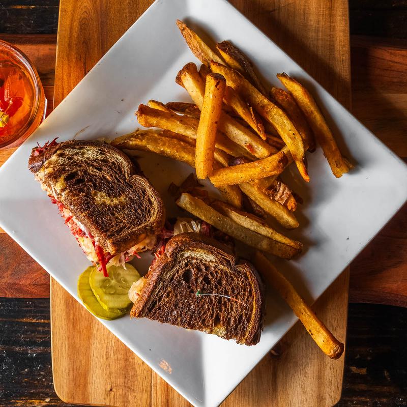 Slow roasted corned beef with Swiss, kraut, thousands island on rye