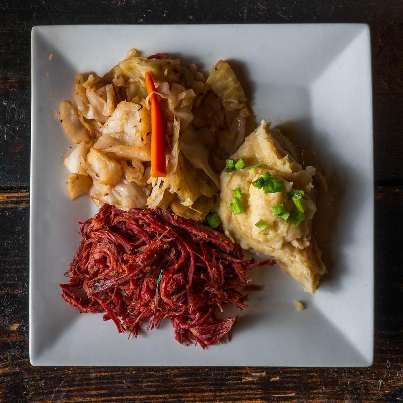 Angus beef served with vegetables, mashed potatoes baked with cheese & Guinness gravy