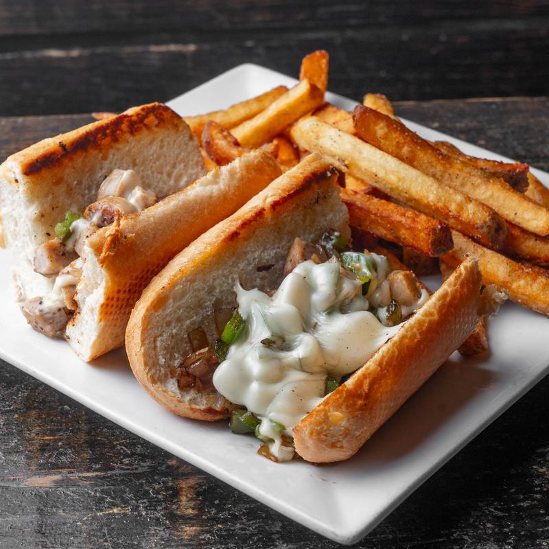 Choice of chicken or shaved sirloin with sauteed peppers, onions and white American cheese served on a roll